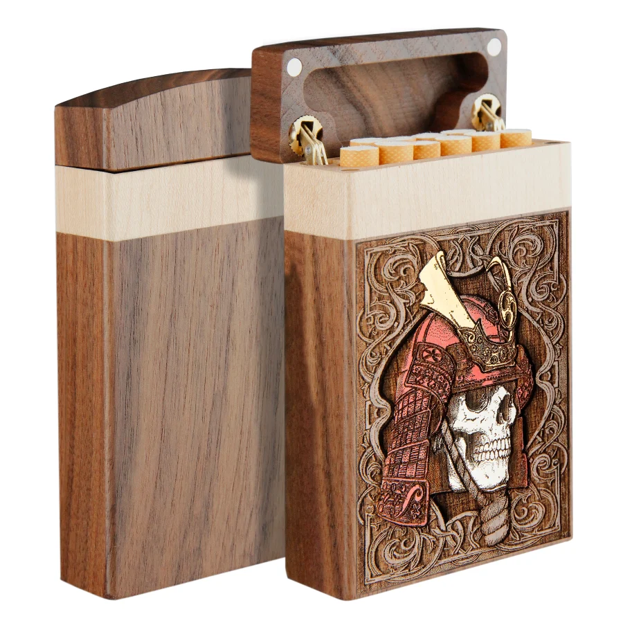 Our cigarette cases are made of genuine natural fir and mahogany wood, engraved with millimeter precision and hand-painted with high-quality acrylic paints,