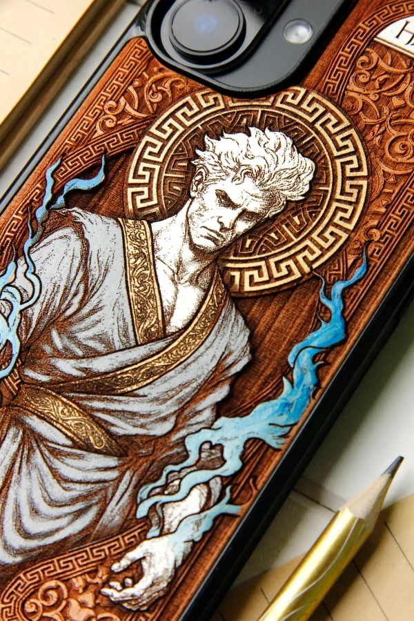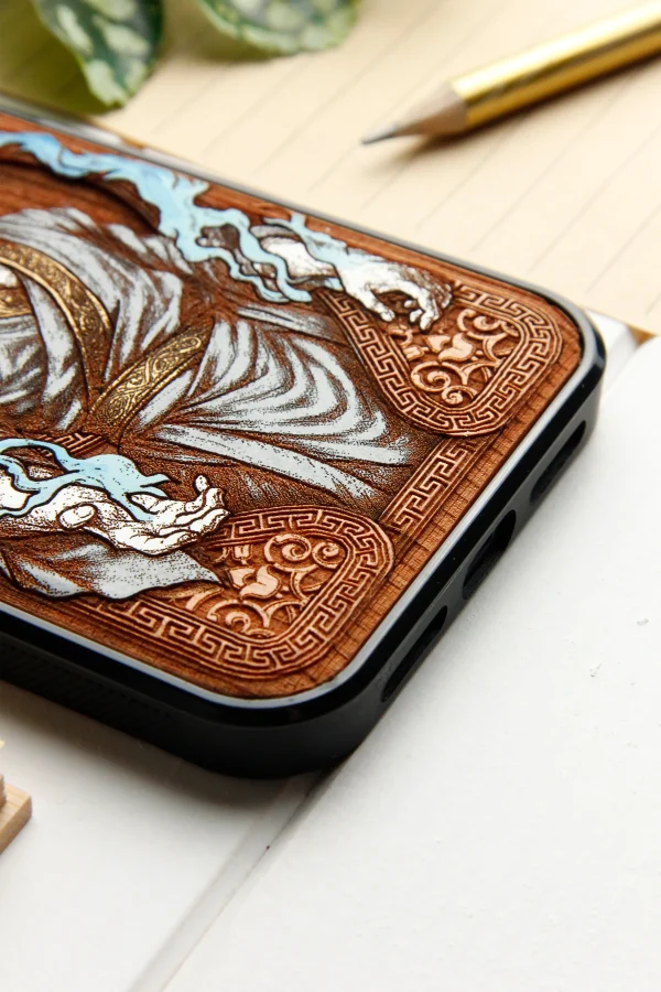 Our cases are made of genuine natural wood, engraved with millimeter precision and hand-painted with high-quality acrylic paints,