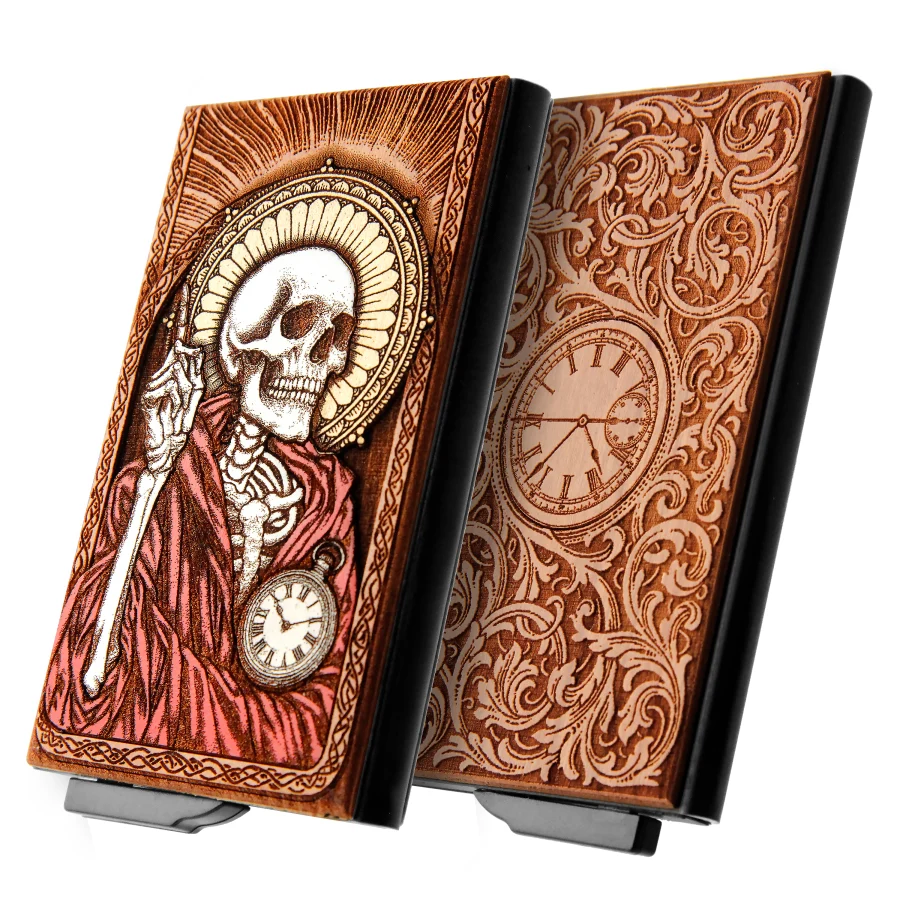 Our card holders are made of genuine natural wood, engraved with millimeter precision and hand-painted with high-quality acrylic paints,