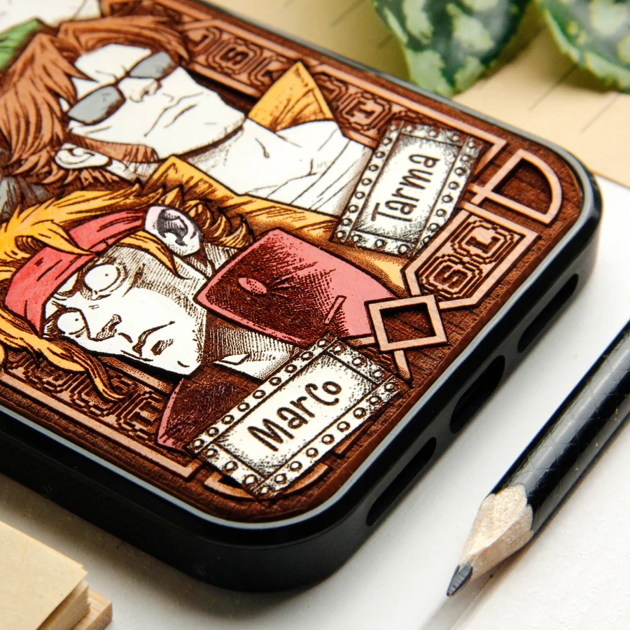 Our cases are made of genuine natural wood, engraved with millimeter precision and hand-painted with high-quality acrylic paints,