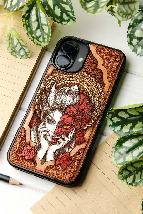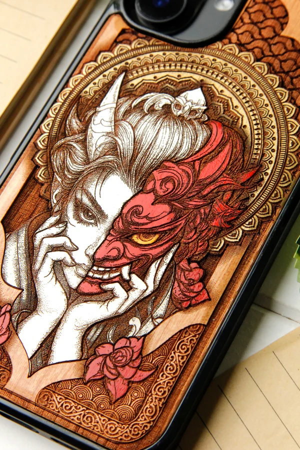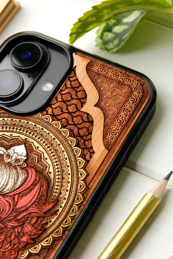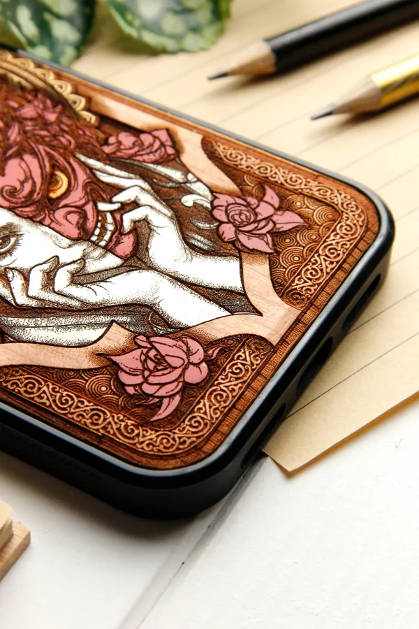 Our cases are made of genuine natural wood, engraved with millimeter precision and hand-painted with high-quality acrylic paints,