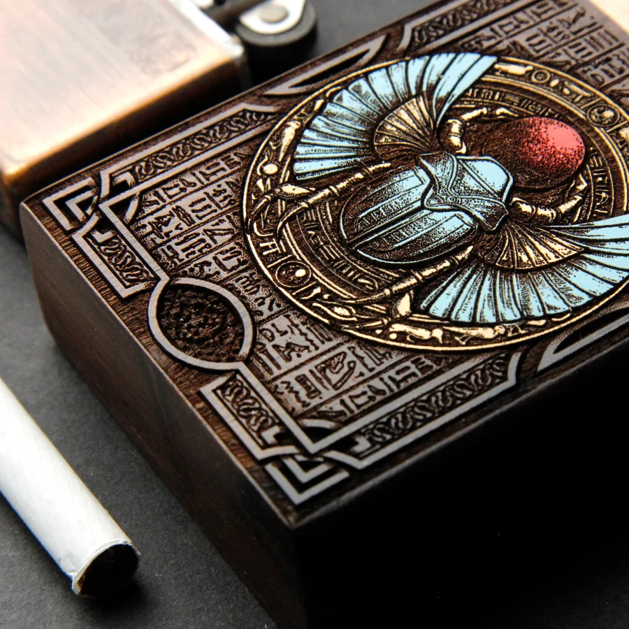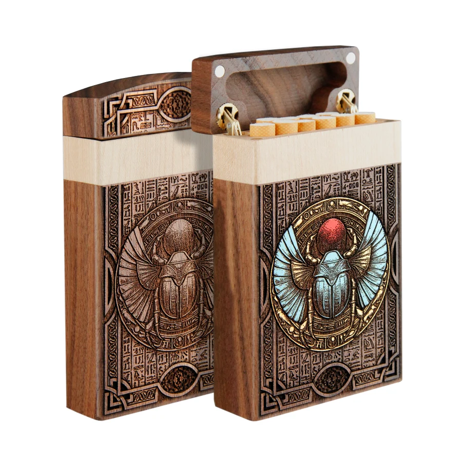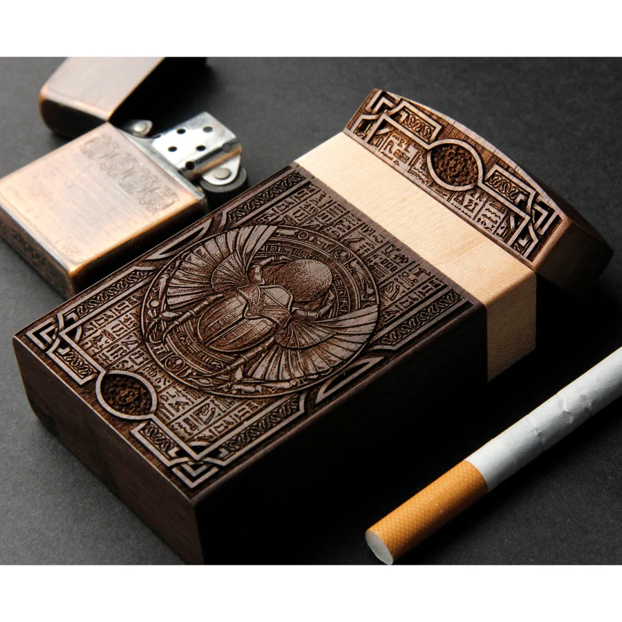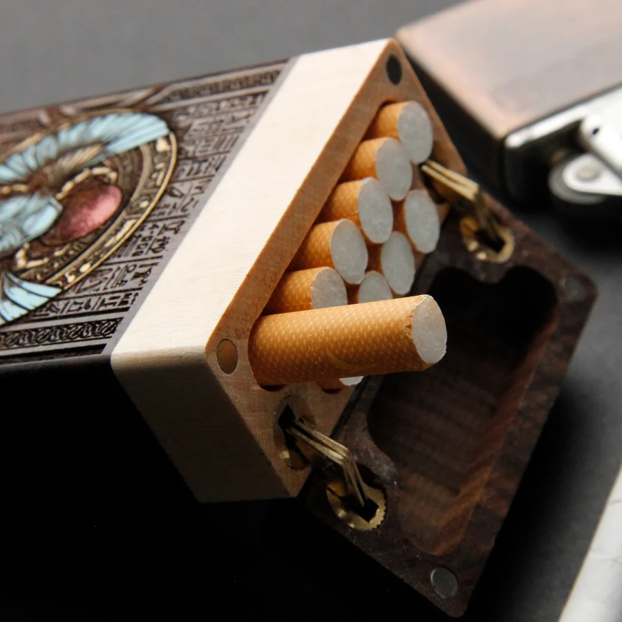 Our cigarette cases are made of genuine natural fir and mahogany wood, engraved with millimeter precision and hand-painted with high-quality acrylic paints,